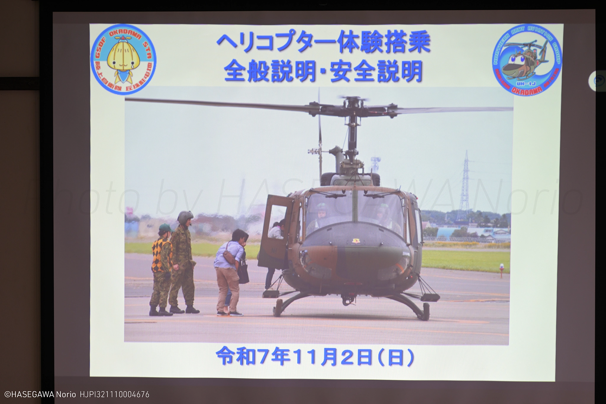 搭乗に先立って、丘珠駐屯地の概要に関する説明と、搭乗にあたっての安全上の注意事項の説明がありました。