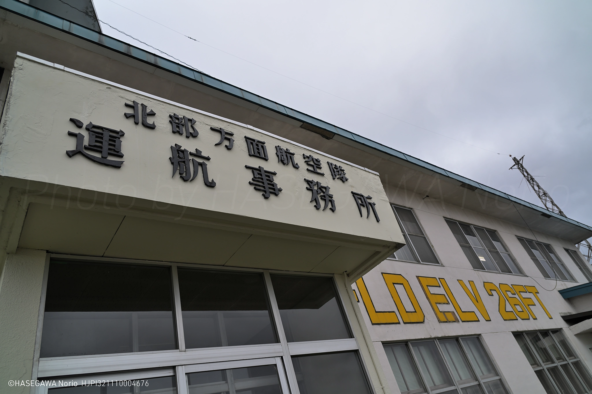 運航事務所の建物の壁には“FLD ELV 26FT”とあります。Field Elevation 26 Feetの意味で、札幌飛行場の標高が26feet(約8メートル)であることを示しています。