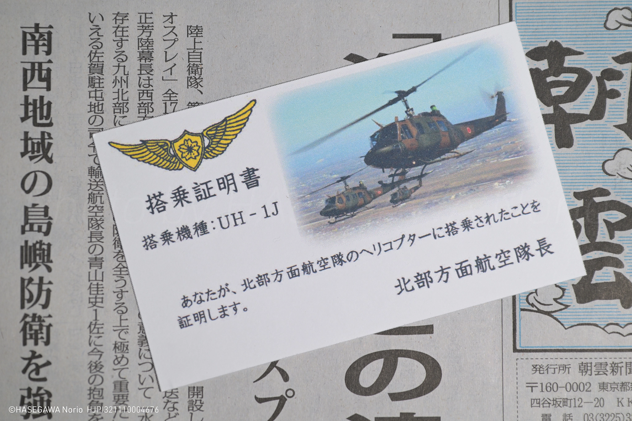 解散前には丘珠駐屯地広報室お手製の搭乗証明書(名刺サイズ)をいただきました。